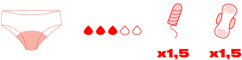 - ha valakinek extrán erős a vérzése (pl. óránként cserél betétet), ő ne önmagában használja a bugyit, mert akkor valószínűleg cserélnie kell majd, hanem plusz védelemként, tölcsér, tampon betét alá!