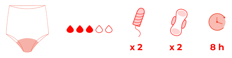 Ugyanazt a napi rutin adja meg, mint a sima bugyi. Nem kell plusz eszköz, önmagában használható, reggel zuhanyzás után felveszed, este zuhanyzás előtt leveszed. Nem kell betét, tampon. Akár egész napon át komfortosan használható. Szagok és átázás nélkül.