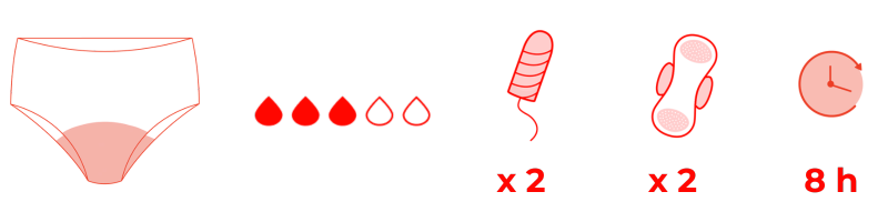 Ugyanazt a napi rutin adja meg, mint a sima bugyi. Nem kell plusz eszköz, önmagában használható, reggel zuhanyzás után felveszed, este zuhanyzás előtt leveszed. Nem kell betét, tampon. Akár egész napon át komfortosan használható. Szagok és átázás nélkül.